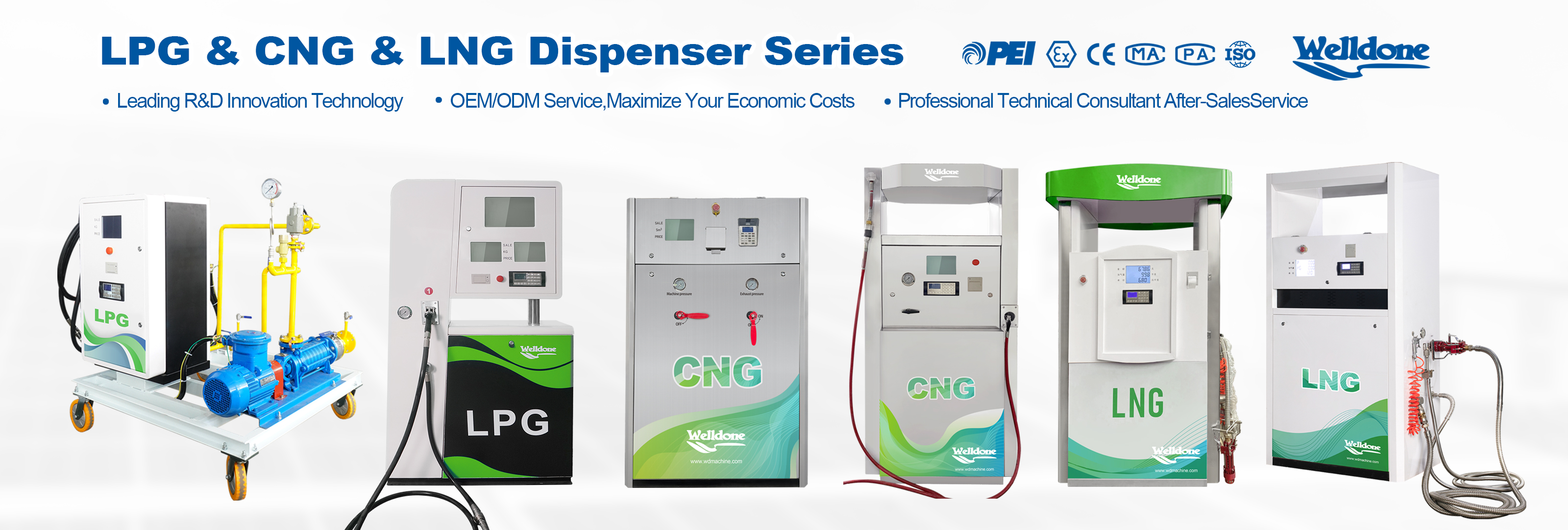 We are Welldone Group (Welldone Machine & Huiyang Energy). We are the supplier of gas station equipment in the areas of Hydrogen Energy, Liquid Natural Gas (LNG), Compressed Natural Gas (CNG), Liquid Petrol Gas (LPG), Fuel, Urea/DEF, EV Charger, and Energy/Power Bank.